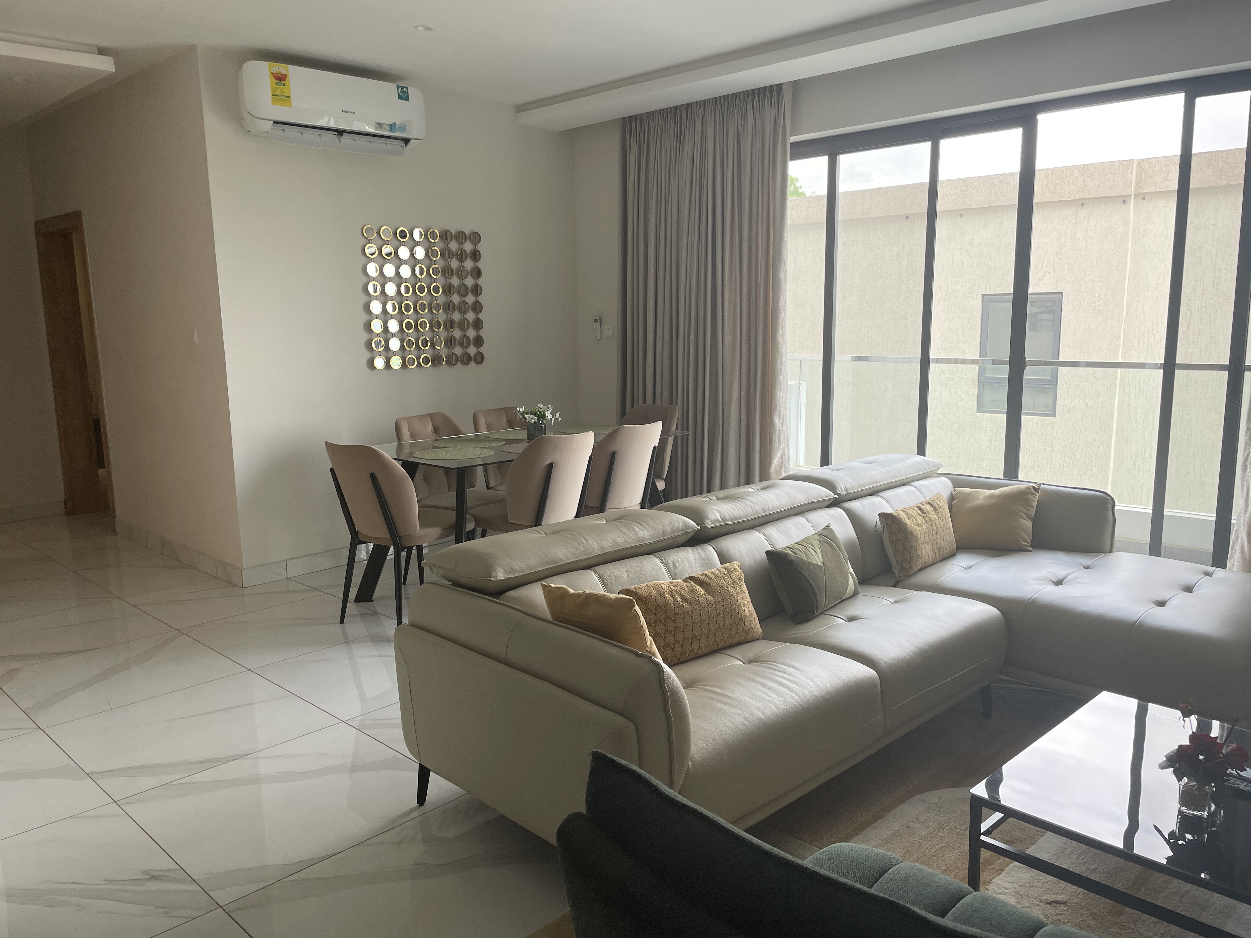 Enjoy comfortable modern living in this stylish open-plan apartment featuring a spacious master bedroom, a cozy guest bedroom, and two separate washrooms. The apartment is fully furnished with essential home appliances and quality furniture, plus a relaxing balcony for outdoor comfort. Located in a highly developed area of East Legon, you have quick access to shops, restaurants, international schools, and all major amenities.